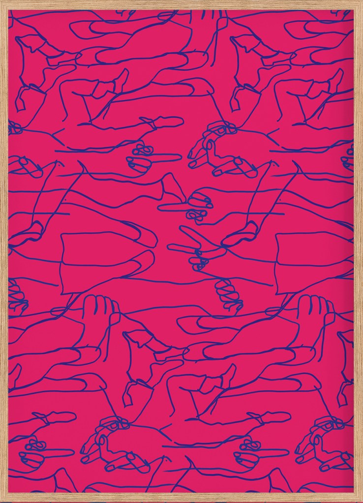 und wie man diese, durch Hände und Füße zum Ausdruck bringen kann. Dazu erstellt nathys_illustration Onelines von Hände und Füße, die einzelnen Illustrationen werden von Patrick Pfeiffer zu einem Rapport erstellt der dann auf Stoff gedruckt wird. Daraus entwickelten Sie ihre Kollektion „Emotion Inmotion“, Emotionen in Bewegung.